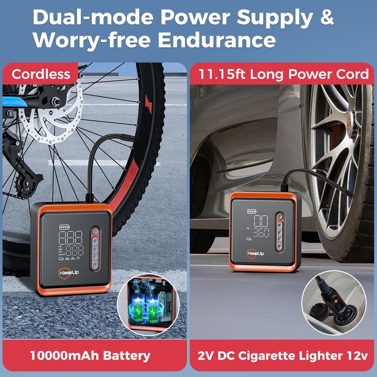 Portable Cordless Tire Inflator with Digital Display and Dual Power Options