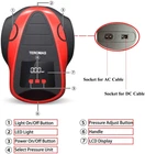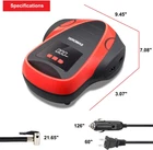 AC/DC OUTLET & MULTI-PURPOSE: TEROMAS tire inflator unique AC/DC with 12V car cigarette light plug as well as 110/120V wall plug for home outlet makes this inflator more useful since you can use it anywhere. Come with 3 additional adaptors which makes it perfect for cars, RV, motorcycles, bikes tires, air mattress, inflatable boats, balls and other inflatables.(NOTICE: NOT SUPPORT FOR HEAVY DUTY TRUCK OR TRACTOR TIRES) STRONG POWER & SPACE-SAVING: Up to 150 PSI, Inflate the P195/65R15 car tire from 0 to 35psi under 4min. It makes inflating tires in emergency easier and more convenient. Portable size which take up very little space and allow you keep it in your automobile or home. PROGRAMMABLE INFLATION: Use the "R" button to set your desired pressure unit, and then press the "+" and "-" buttons to set the desired pressure. The air compressor will automatically shut off when it reaches the pre-set pressure (Please make sure the pressure you set is higher than the current pressure of your tire). DIGITAL DISPLAY & LED Lighting: Bright backlight LCD display makes for convenient use at night. As well as being bright enough to see under strong sunlight, The air compressor gauge can display the pressure in PSI, BAR & KG/CM². TEROMAS air pump is equipped with bright and long-lasting LED lights, easy to use even in the dark. 100% SATISFACTION: This is a great tool to take along with your driving tours, use it anytime you need. Meanwhile, any problems, please feel free to contact us. We will do our best to help you. GET 100% SATISFACTION. Product Description Package includes: 1 x Air Compressor 4 x Nozzle Adapters 1 x User Manual 1 x AC Cable for Home Use 1 x DC Cable for Car Cigarette Lighter 1 x Replaceable Fuse Not Included the Carrying Bag Specific features of our air compressor: Auto shut-off function; Set of nozzle adaptors; Digital display and LED work-light for easy use; AC (110V) and DC (12V) adaptable for home and car using. Digital Portable Powerful AC DC Tire Inflator TEROMAS presents you with a premium quality programmable air compressor. This portable tire inflator comes with two power cords (110V and 12V) making it extremely convenient to use both on the road and indoors. The backlit digital pressure gauge allows for choosing between different measuring units for your convenience. This product is designed for compact portability and can be easily stored in the driver’s cabin. Kindly Notes: The air compressor can not be used on big truck and motor lorry. When connect the AC outlet at the first time, please wait 5 seconds to let the air pump energize. Avoid over-inflating, never exceed the recommended pressure. Items over inflated may burst and cause serious injury. Inflate 10 or 15 minutes let it have a break for 10 minutes. Digital LCD Display Three Nozzle Attachments Bright LED Light Replaceable Fuse Specifications: Power: 120 W; Voltage: DC 12V / AC 110V-220V; Maximum pressure: 150 PSI; AC cable length: 60 in; DC cable length: 126 in; Air hose length: 21.65 in; Display units: PSI, BAR, KG/ CM²; Product weight: 1.1 kg; Item size: 9.2 x 7.1 x 2.8 in.