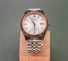 THIS WATCH INCLUDES TWO BRACELET OPTIONS: The stock two-toned rose gold bracelet with butterfly clasp, and the identical construction all-steel version of the same bracelet with butterfly clasp (an additional $250 retail value). The second bracelet was provided by Tissot and includes the original packaging. The dual bracelet option allows for additional flexibility that allows you to chose exactly how much two-toned goodness that you want to wear. Both bracelets quickly interchange with standard springbars, and are currently sized for a 7.5 inch wrist with additional links provided. This watch also includes a Tissot canvas zipper tote bag. TISSOT BALLADE POWERMATIC 80 SILICIUM The Tissot Ballade Powermatic 80 Silicium functions as one of Tissot's flagship models in their brand line up, offering an incredibly refined and sleek model that is great for both the seasoned collector and the high-end consumer alike. With the combination of fluted bezel, gilloche dial to sector dial layout, the ballade takes on a traditional look of elegance that you would often need to pay many thousands of dollars to achieve. The beauty of the Ballade design is the marriage of capability utilising Tissot's construction, both with highly competent movements and durable materials, placed into a platform that can take the knocks of daily life. If you've been looking for a semi-formal watch that can be worn in business formal environments, then dressed down to more casual events with the right strap and bracelet combination, the Ballade is a fantastic choice. This watch is now discontinued and is becoming quite rare and hard to find as a brand new watch. At the pinnacle of Tissot's platform and movement design, The Ballade COSC Silicium uses Tissot's high-end Powermatic Silicium COSC 80-81 movement that offers an 80 hour power reserve that is Swiss Chronometer Certified (COSC). Thanks to the Silicium model's silicone balance spring, the watch maintains a greater level of magnetic resistance when compared to regular watches with a steel balance spring. NOTE: The Powermatic 80 Silicium 80-81 movement is not the same movement used in the PRX. Due to the COSC requirements, the Silicium movement does not use the plastic escapement from the PRX and lower powermatic models. The Powermatic 80 Silicium COSC sits at the top of Tissot's current movement design and capabilities, as the most rugged and accurate movement available in the greater Tissot lineup. Please google "Tissot Powermatic 80 Silicium" for Tissot's video on the movements unique capabilities if you're interested in more information. The watch employs a time-tested and classic two-toned stainless steel case that implements rose gold accents, through to the fine details on the watches' dial. The original bracelet also implements the rose gold accents, however with the secondary bracelet can be swapped over to the steel-only option on the second bracelet. The Ballade uses a surprisingly thin 41mm case design that wears on considerably smaller than the size would suggest, feeling closer to 39mm mm. The watch uses 20mm lugs, making this one an incredible strap monster, capable of taking a range of formal and casual straps. The watch also uses saphire crystal front and back, to increase the durability and scratch resistance of the model. The Tissot Ballade Powermatic 80 Silicium offers an incredible platform to those looking for a more formal watch that doesn't need to be babied or handled with extreme care. While the watch has more formal-looks, the construction, materials and movement scream sports watch, giving the wearer an incredibly accurate and tough watch, that would look completely at home on in a corporate boardroom while also being fully capable on the hiking trail. The Ballade model became the halo watch of the Tissot brand, sitting above even the Gentlemen and PRX models as something a little bit special. This watch is brand new and was purchased for photography and review. The watch includes the original box, manuals, packaging, warranty card, and the additional packaging form the second bracelet. This watch was never worn outside of the photo studio and is in new condition, however there may be very minor surface scratches on the underside of the watch and bracelet from the photography process. The watch case and crystal are immaculate with no signs of wear. This watch sells and ships from Canada and is available for purchase internationally. The buyer assumes responsibility for import duties and taxes on international orders placed outside of Canada. Please refer to your government's websites for imports and international purchases for more information specific to your region. WATCH SPECIFICATIONS: Case Size 41 Case Thickness 9.6 mm Case Material Stainless Steel Case Shape Round Case Back Display Band Band Material Stainless Steel Band Type Bracelet Band Color Two-tone (Silver-tone and Rose Gold PVD), Stainless Steel Band Width 20 mm Clasp Butterfly Dial Dial Color Silver Opaline Type Analog Crystal Scratch Resistant Sapphire Hands Rose Gold-tone Dial Markers Index Second Markers Roman Numerals appear at the 6 and 12 o'clock positions. Arabic Numeral Minute Markers (at 5 minute intervals). Minute Markers around the outer rim Bezel Fixed Bezel Color Rose Gold PVD Bezel Material Stainless Steel Crown Pull / Push Information Brand Tissot Collection Name Ballade Gender Mens Model T108.408.22.278.00 Watch Label Swiss Made Movement Automatic Engine Powermatic 80.811 Power Reserve 80 hours Features Water Resistance 50 meters / 165 feet Calendar Date display at the 3 o'clock position Functions Date, Hour, Minute, Second, Chronometer Watch Features Analog, Stainless Steel, Gold, Chronometer Certified (COSC)