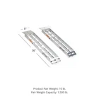 Titan Ramps 36" x 8" Aluminum Dual Shed Ramps New Item # 311437 The 36" L Dual Shed Ramps make loading your riding lawn mower, snowblower, wood chipper, or ATV into your raised shed or garage an easier task. These aluminum, industrial-grade portable, lightweight ramps are designed to withstand continuous use yet strong enough to get the job done. Featuring a 750 lb. capacity per axle, these durable ramps are easy to set up and can permanently mount to the floor of your shed using the pre-drilled holes. Titan Ramps 311437 Features: Manufactured from aluminum 750 lb. Weight capacity each; 1.500 lb. weight capacity total Measures 36" L x 8" W x 2" H Solid plate lip features pre-drilled holes for permanent mounting Use these ramps to store your lawn mower, snowblower, or wood chipper in a raised shed Measures 36" x 8" x 2" overall Weighs 9 lbs ⚠️ WARNING: This product can expose you to chemicals known to the State of California to cause cancer, birth defects or other reproductive harm. -- Discount Ramps is your home & garden loading, hauling, and transport superstore - providing quality innovative products with the best overall value to get the job done right. Our knowledgeable service and sales home & garden experts have years of experience in the industry and look forward to finding the right solution for you to load and secure equipment for travel. Please contact by phone or email for any questions about 311437 yard shed loading ramps - thank you! Discount Ramps