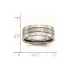 Finish:Polished & Brushed|Band Width:8 mm|Material: Primary:Titanium|Ring Fit:Standard|Sizeable:No|Thickness:< 2 mm|Item Weight U/M:gm|Width of Item:8 mm|Engravable:Yes|Packaging:Gift Pouch|Product Type:Jewelry|Jewelry Type:Rings|Sold By Unit:Each|Gender:Unisex|Texture:Grooved|Material: Primary - Color:Grey|Ring Type:Wedding Bands|Edge Type:Flat|Ring Shape:Flat All weights and measurements are approximate and may vary slightly from the listed information. Welcome to diamond_6720 Payments We accept all Ebay approved payment. Please sent the payment to us within 8 days after the auction has ended, or you will have unpaid case auto open by eBay. Shipping Policy We will ship all items within 1 business days of purchase during the work week (M-F) excluding holidays. If you order on Friday, your order will be shipped the following business day. Tracking will be provided when it becomes available. We will only ship to a PayPal Verified Address. Please make sure your address is current and correct. If the information does not match, your order may be canceled. Buyers are responsible for all customs, duties and taxes for your respective countries. Delivery times for International Shipping will vary. California Buyers Pay 9.0% Tax on all orders. case auto open by eBay. Return Policy & Exchange Returns or Exchange are accepted. Buyer must contact us within 30 days after the item is received. Item must be returned in unworn and resalable condition. We will only issue a refund for the purchase price, excluding any shipping fees. If we are at fault, we will provide a full refund. Buyer is responsible for all return shipping costs. BUYERS FEEDBACK If you have any concerns regarding your purchase, please contact us via eBay Message, we assure you that a satisfactory resolution will be reached. Your feedback is very important to us Do remember to give us 5 star rating(*****) if you are satisfied with our product & service .