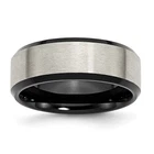 Titanium Brushed Center Black IP-plated 8mm Beveled Edge Band Ring Size 8