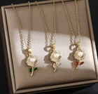 Titanium Gold Flower Rose Green Leaf Pave CZ Pearl Pendant Chain Necklace This unique and exclusive design is adorable and sure to bring lots of attention. This piece is representative of this season's latest fashion trends. Shopping with confidence! Description : Material: Titanium Cubic Zirconia Pearl Craft Process: Pave Micro-inlay Cubic Zirconia Stone: Finest Cubic Zirconia Stone: (Approximately 2.0 Carats Total) Pendant Size Approx: 12mm x 18mm (1 Inch = 2.54cm) Chain Length Approx: 16+2 inches (40+5cm) Amount: 1 Necklace Color: Gold / Green / Red Condition: This item is 100% new Payment: Payment must be made within 3 days. thanks your understanding Shipping: W e will shipping items to you within 1 work days after payment cleared, it usually takes about 3-7 business days to arrive at your home. International buyers, please note: International shipments may take up to three weeks for delivery depending upon each country's postal system or customs delays. import duties & taxes are not included in this purchase but are the responsibility of the buyer. Please check with your country's customs office prior to purchase In some cases tracking progress is not provided. This is dependent upon the policies of each country's postal service. About us: Any question / special request please contact us. We are happy to leave you a positive feedback and hope you will do the same to us . Thank you for viewing and have a great day!!!