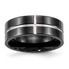 Titanium Polished Black IP-plated 8mm Grooved Comfort Fit Band Ring Size 7