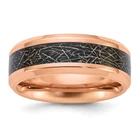 Titanium Rose IP-plated Leather Inlay in Clear Epoxy 8mm Band Ring Size 10