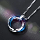 Titanium steel necklace, men's fashion clavicle chain, niche design Cuba pendant Material: titanium steel Treatment process: Polishing Shape: geometric type Chain style: bamboo chain Pendant material: titanium steel Length: 60cm Color: three-ring interlocking blue Style: Cool Style category: Personality