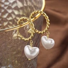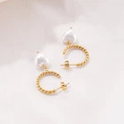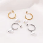 HomeTitanium steel twist C ring earrings heart-shaped pearl earrings for women