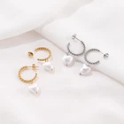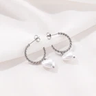 Titanium steel twist C ring earrings heart-shaped pearl earrings for women