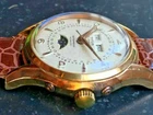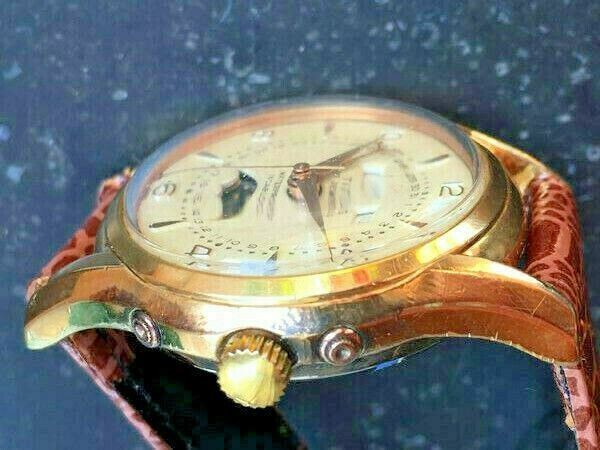 ultra rare Titus triple calendar moonphase watch, a watch with a priceless value. mit dem besten Kaliber, was je gebaut wurde, dem Felsa 693 Bidynator Das Felsa-Bidynator-Werk ging in die Uhrengeschichte ein. Felsa war eine kleine, aber sehr innovative Uhrenwerkmanufaktur in der Schweiz. Das bereits 1942 mit dem Kaliber 692 eingeführte Werk war das erste Automatikwerk, dessen Rotor in beiden Richtungen aufzog. Für die Polarisierung der Rotorbewegung sorgte ein "Umschalter" auf Zahnradbasis. Ein Glanzstück der Uhrmacherkunst der 1950er Jahre. alles funktioniert einwandfrei, Uhrzeit, Kalender, Wochentag, Monat und Mondphasenanzeige Zifferblatt absolut original mit wunderschöner Patina, die das Herz eines jeden Vintage-sammlers höher schlagen läßt perfekt erhaltenes Oyster-Gehäuse mit allen Originalsignaturen, Durchmesser ca. 34 mm ohne Krone Die Uhr hat 4 seitl. in das Gehäuse eingelassene Korrekturdrücker für Tag, Monat, Zeiger-Datum und Mondphase. neues Lederarmband bis 23 cm Länge ....wunderschöne Uhr... ..eine der feisten schweizer Uhrenmarke... ...viel Spass mit der Schönheit.. the better PRolex 6062 Beautiful and yet understated timepiece from ca.1960 by Titus swiss . It does offer you an affordable way to combine stainless steel case with screw-down caseback, automatic movement, and full calendar with moonphase! It is powered by Felsa 693, a great movement featuring patented Bidynator technology allowing the barrel to be wound while rotor moves in both directions. We offer here an excellent unpolished case, diameter without crown 37 mm elegant all original dial with raised markers and Roman numerals and have nothing to complain about at the end! Fully-functional and keeping time perfectly. never used leather strap 23 cm lengh The caliber Felsa 693, also called Bidynator, is the first automatic caliber with both sides acting flywheel rotor. A mechanical switch on gear-based polarized at the 1942 created movement the direction of movement of the flywheel. In 1942 launched caliber Felsa 692/93 (11 1/2 lines, height 5.8 mm) caused a "switch" to gear based on the polarization of the rotor movement. The elevator was therefore made in both directions of rotation of the flywheel mass. That was an evolution of the caliber, resulting in the very expensive Rolex ref. 6062 was used So do not miss the price rocket, prizes that will break records on the vintage watch market in the future. What does your moon phase tell you? Do not miss the unique opportunity to win one of the rarest and most valuable watchs with moon phase once in your life Listing and template services provided by inkFrog