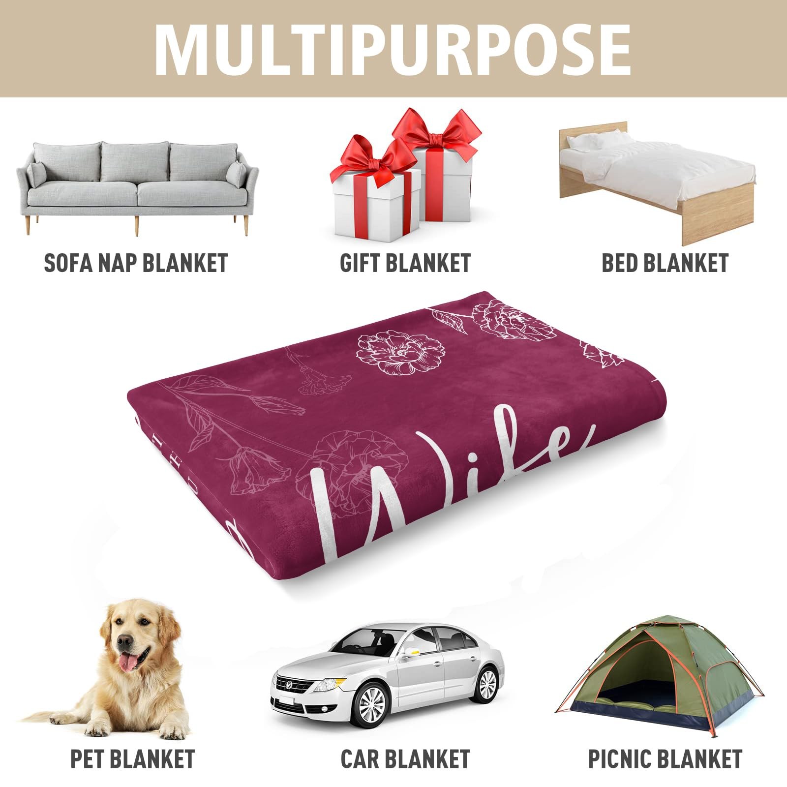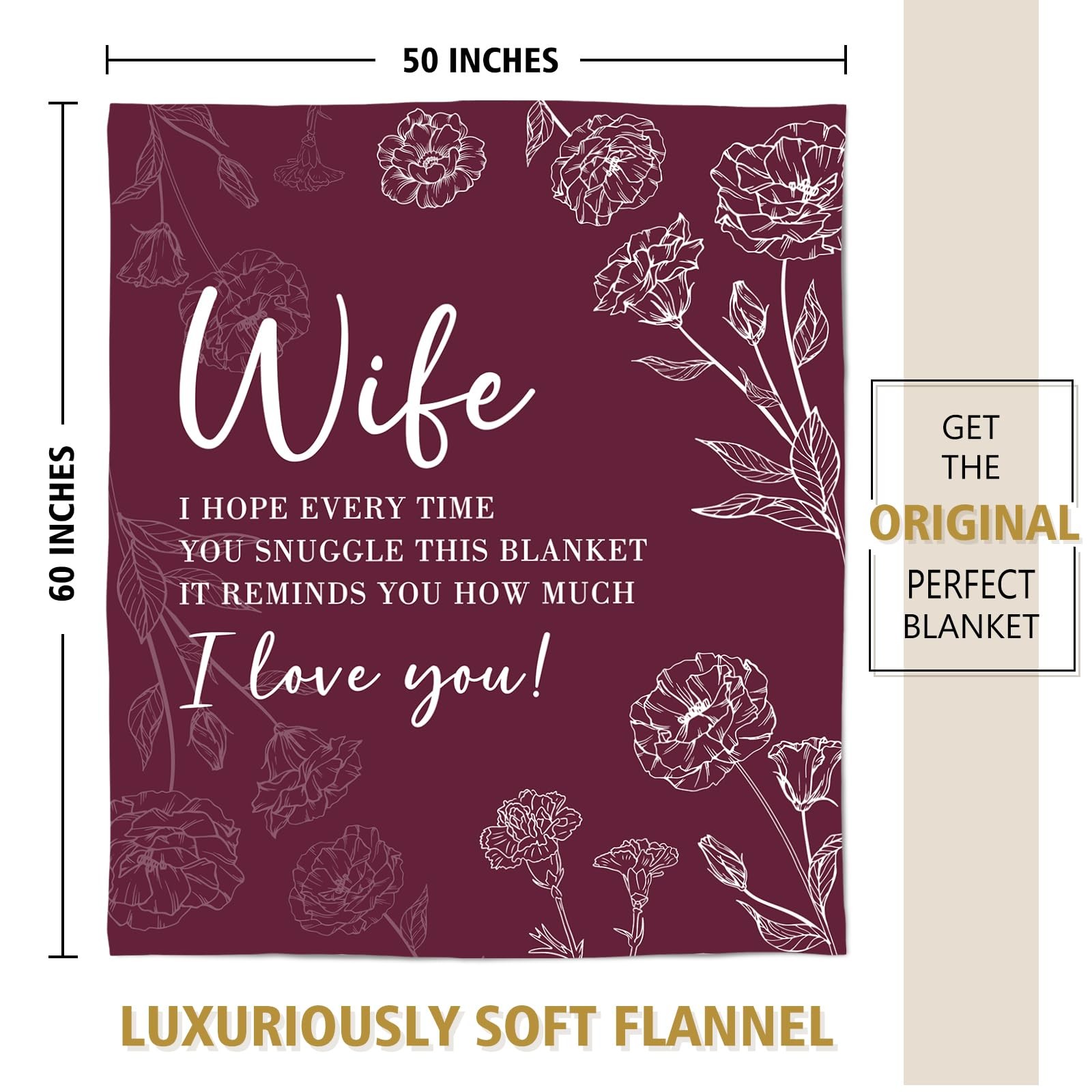 To My Wonderful Wife Valentine Gifts For Her Birthday Anniversary Present Love 【Romantic Gifts for Wife】The wife blanket is Engraved with the text “ Wife, I Hope Every Time You Snuggle This Blanket, It Reminds You How Much I Love You". Whenever she wraps this blanket, warmth will surround her like your hug. Even though thousands of miles apart and time passes, the love will always be close to her 【Best Wife Birthday Gift Ideas】This blanket is the ideal birthday gift for your wife it is the perfect expression of love and care.. This unique and touching blanket will surely bring your wife surprise and warmth, Every time she wraps it, the soft touch is her dependence when she is alone, and the silent companionship is her most reassuring strength 【Wife Gifts For Any Holidays】This Wife Blanket is a romantic gift for your wife for all occasions. Whether it's her birthday, anniversary, Valentine's Day, Mother's Day, Christmas or just a random day to express your love, this cozy blanket is a sincere expression of how much she means to you 【Wife Blanket Size & Material】The wife blanket size 60"x 50". Our wife blanket is made of anti-pilling flannel, which is soft touch, pilling resistance, wrinkle resistance, durable and comfortable 【Multiple Application】Our wife throw blanket are decorative and very useful in various places such as; couch, sofa, bed, farmhouse, and home decor. It can also be used as a picnic blanket, gym, yoga, table cloth, and travel blanket Gifts for Wife Blanket: Blanket gifts for wife from husband, express your love and care for wife. Whenever she wraps this blanket, warmth will surround her like your hug. The soft blanket makes a thoughtful wife gifts for wife birthday gifts, Anniversary gifts, Valentines day gifts, Mothers Day gifts, Christmas gifts for wife. Versatile Blanket: Suitable for all seasons indoors and outdoors. Not only suitable for daily office, home life, business travel, but also can be used as a nap blanket, car blanket, home blanket, sofa blanket and outdoor camping blanket. Specification: Product Name: Mom Blanket Material: Flannel Size: 127*152cm/ 50*60in Item weight: 600g/ 1.3lb Shipping We offer FREE shipping on all orders! We ship within Three business days of payment, usually sooner. We use a selection of shipping services such as UPS, FedEx, USPS etc. We only ship to the lower 48 states, no APO/FPO addresses or PO Boxes allowed. Local pickups and combined shipping options are not provided at this time. Return You can return a product for up to 30 days from the date you purchased it. Any product you return must be in the same condition you received it and in the original packaging. Please keep the receipt. Payment We accept payment by any of the following methods: PayPal Please pay as soon as possible after winning an auction, as that will allow us to post your item to you sooner! Feedback Customer satisfaction is very important to us. If you have any problem with your order, please contact us and we will do our best to make you satisfied. Contact Us If you have any queries, please contact us via ebay. We usually respond within 24 hours on weekdays. Please visit our eBay store to check out other items for sale! Thank you for shopping at our store.