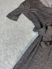 The Toad & Co Cue Wrap Dress in size Large is a stylish and comfortable choice for women. This gray geometric dress features a V-neckline, short sleeves, and a pullover closure for easy wear. Made from a blend of spandex and cotton in a knit fabric, it offers a flattering fit and is machine washable for convenience. The midi length and wrap style add a trendy touch, while the geometric pattern and blue accents make it a versatile piece for any wardrobe. Complete with pockets for added functionality, this dress is a great choice for everyday wear. 3375