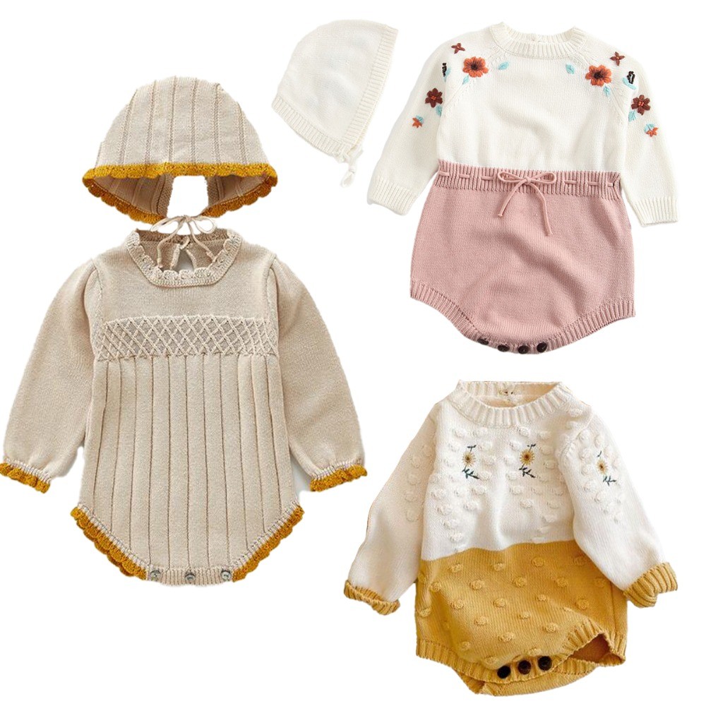 Toddler Infant Baby Girl Knit Sweater Romper Long Sleeve One Piece Jumpsuit