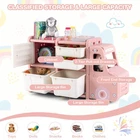Toddler Lightweight Truck Shaped Organizer Cabinet Large Storage W/ Plastic Bins ● Large Storage Capacity: The adorable toy storage organizer consists of 2 large bins, 2 small drawers, a single-door cabinet and a hollow front end, offering large storage capacity for kids' toys, dolls, snacks, books and clothes. Besides, the hollow front end is fitted with a detachable cover, so that you can easily put stuff inside. ● Good Organizing Habit: The overall dimensions of the storage cabinet are 43.5"L x 13"W x 26"H, which is easy for kids to reach the items on it. With so many different storage options, your little one can learn to classify their belongings and keep them in an organized way, thus helping to develop a good storage habit. ● Child-friendly Material: The kids toy organizer with ASTM and CPSIA certification is made of high-quality HDPE material, which is durable, BPA-free, odorless and friendly to children's well-being. And the sleek edges and rounded corners minimize the risk of bumping or scratching, while the stable construction avoids wobbling or tipping over. ● Cute Truck-shaped Organizer: Designed in an adorable truck appearance, the toy collection chest will attract kids' attention and be a good addition to kids' bedroom, playroom, reading room or nursery. Moreover, it is lightweight and easy to move, which means that it is a good choice for anywhere! ● Easy to Assemble: With convenient interlocking design and nut fixation, the baby truck organizer is easy to put together. Besides, an Allen key and a screwdriver are included in the package, allowing you to finish the task together with your little one! In addition, the truck front can be mount to the left or right as needed. Color: Pink Material: HDPE Overall dimensions: 43.5" x 13" x 26" (L x W x H) Interior dimensions of big bin: 12" x 10" x 8.5" (L x W x H) Interior dimensions of small bin: 12" x 10" x 4" (L x W x H) Weight limit of each tier: 66 lbs Weight limit of front engine: 110 lbs Net weight: 23 lbs Recommended age: 3 years old +