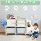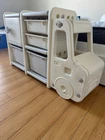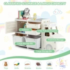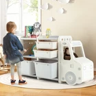 Toddlers Truck Toy Storage Kids Organizer Cabinet With 2 Plastic Bins & 2 Drawer ● Large Storage Capacity: The adorable toy storage organizer consists of 2 large bins, 2 small drawers, a single-door cabinet and a hollow front end, offering large storage capacity for kids' toys, dolls, snacks, books and clothes. Besides, the hollow front end is fitted with a detachable cover, so that you can easily put stuff inside. ● Good Organizing Habit: The overall dimensions of the storage cabinet are 43.5"L x 13"W x 26"H, which is easy for kids to reach the items on it. With so many different storage options, your little one can learn to classify their belongings and keep them in an organized way, thus helping to develop a good storage habit. ● Child-friendly Material: The kids toy organizer with ASTM and CPSIA certification is made of high-quality HDPE material, which is durable, BPA-free, odorless and friendly to children's well-being. And the sleek edges and rounded corners minimize the risk of bumping or scratching, while the stable construction avoids wobbling or tipping over. ● Cute Truck-shaped Organizer: Designed in an adorable truck appearance, the toy collection chest will attract kids' attention and be a good addition to kids' bedroom, playroom, reading room or nursery. Moreover, it is lightweight and easy to move, which means that it is a good choice for anywhere! ● Easy to Assemble: With convenient interlocking design and nut fixation, the baby truck organizer is easy to put together. Besides, an Allen key and a screwdriver are included in the package, allowing you to finish the task together with your little one! In addition, the truck front can be mount to the left or right as needed. Color: Gray Material: HDPE Overall dimensions: 43.5" x 13" x 26" (L x W x H) Interior dimensions of big bin: 12" x 10" x 8.5" (L x W x H) Interior dimensions of small bin: 12" x 10" x 4" (L x W x H) Weight limit of each tier: 66 lbs Weight limit of front engine: 110 lbs Net weight: 23 lbs Recommended age: 3 years old +