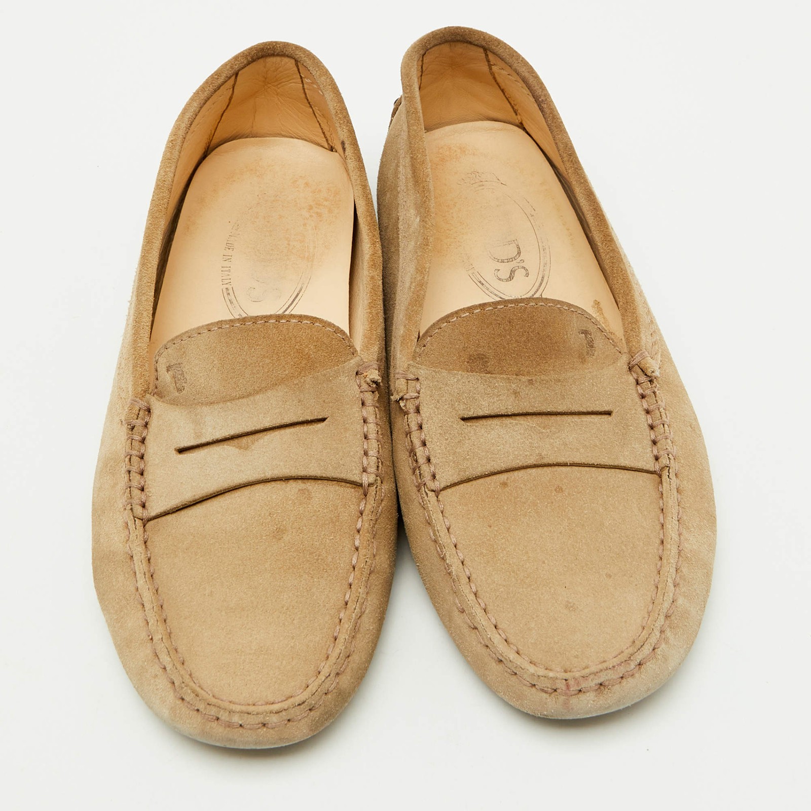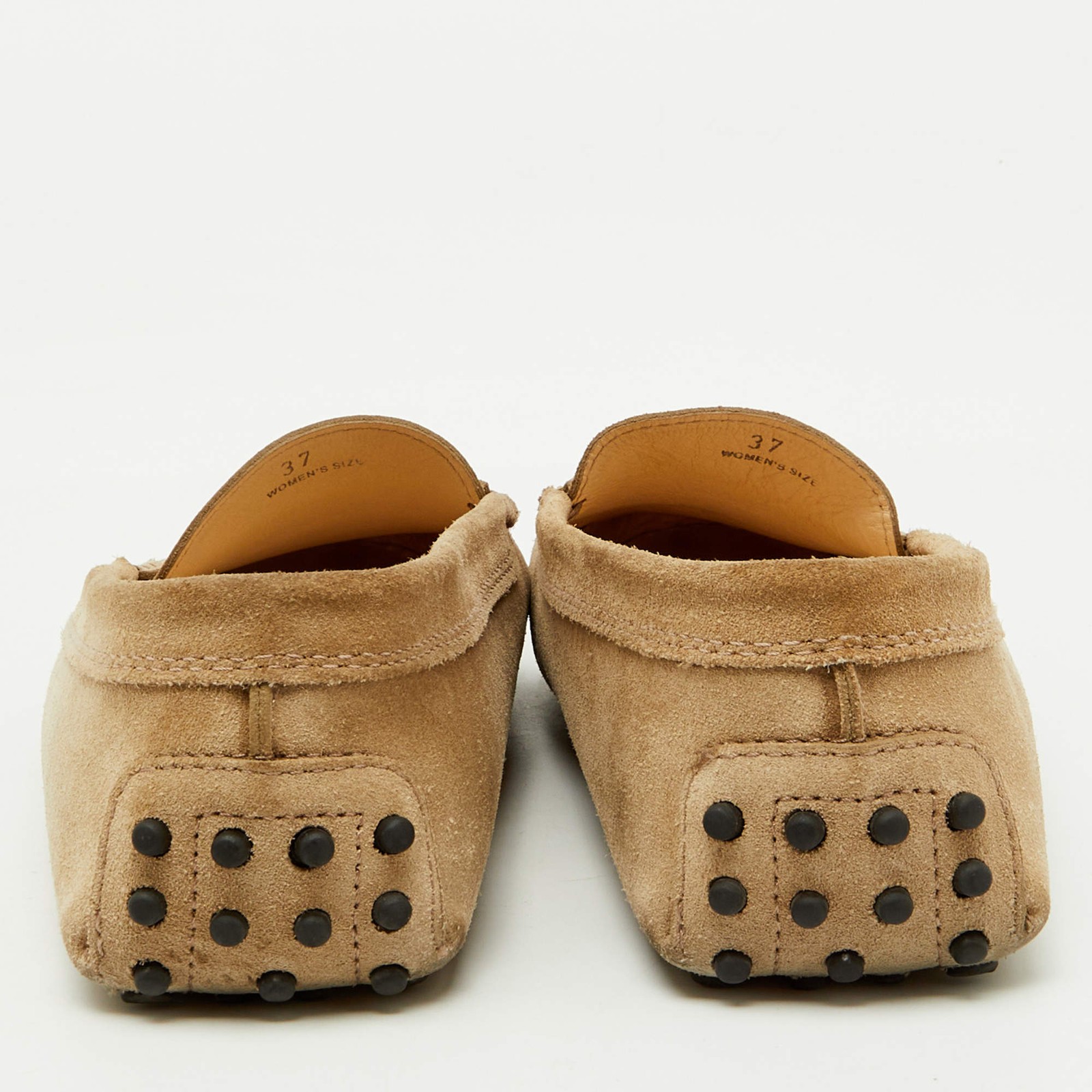 Our eBay Store About Us Contact Us Add to Favorite Sellers Tods Beige Suede Gommino Slip On Driving Loafers Size 37 Tod’s Gommino loafers are a signature of Italian casual elegance, here in soft beige suede with classic pebble rubber soles. These slip-ons deliver all-day comfort with a timeless silhouette. Pair them with cuffed chinos or a shirt dress for effortless everyday refinement. Product Details Brand Tod's Color Beige Includes The Luxury Closet Packaging Outsole Length 23 cm Outsole Width 7 cm Size 37 Certified by The Luxury Closet This item has gone through a detailed authentication process overseen by our experts. We offer a lifetime guarantee of authenticity on all our items. How We Check The in-house team of experts at The Luxury Closet is highly trained to verify the authenticity and the condition of the luxury products. They ensure that only 100% authentic items are put on sale.The evaluation process is unique with its own mix of assessment criteria and differs according to the category. Each item is evaluated based on the following combination of hallmarks, hardware, stitching, symmetry, material, craftsmanship, stamping, codes, hologram stickers, and packaging. Our authenticators also check if the items have been modified or amended (e.g., aftermarket diamonds, replaced batteries, repaired bags, etc.) International Buyers Import duties, taxes and charges are not included in the item price. These charges are the buyers responsibility. Please check with your country’s customs office to determine what these additional cost will be prior to buying.
