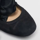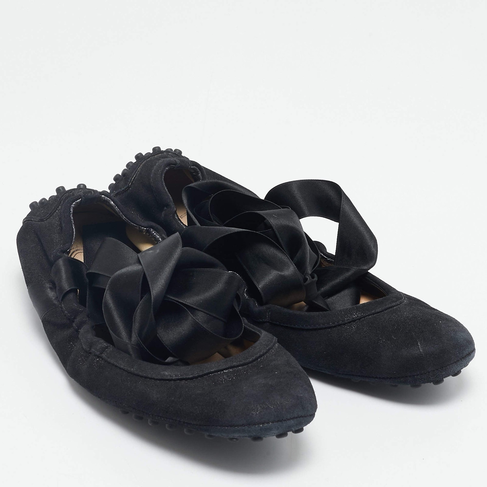 Our eBay Store About Us Contact Us Add to Favorite Sellers Tods Black Suede Scrunch Ribbon Ballet Flats Size 38.5 These ballet flats from Tod's are stunning and perfect for making a statement! They are crafted from suede in a lovely black shade and styled with ribbon fastenings at the ankles. They come equipped with comfortable leather-lined insoles and leather-rubber pebbling on the outsoles. Pair them with your skirts and dresses for fashionable days out. Product Details Brand Tod's Color Black Includes The Luxury Closet Packaging Outsole Length 25.5 cm Outsole Width 8 cm Size 38.5 Certified by The Luxury Closet This item has gone through a detailed authentication process overseen by our experts. We offer a lifetime guarantee of authenticity on all our items. How We Check The in-house team of experts at The Luxury Closet is highly trained to verify the authenticity and the condition of the luxury products. They ensure that only 100% authentic items are put on sale.The evaluation process is unique with its own mix of assessment criteria and differs according to the category. Each item is evaluated based on the following combination of hallmarks, hardware, stitching, symmetry, material, craftsmanship, stamping, codes, hologram stickers, and packaging. Our authenticators also check if the items have been modified or amended (e.g., aftermarket diamonds, replaced batteries, repaired bags, etc.) International Buyers Import duties, taxes and charges are not included in the item price. These charges are the buyers responsibility. Please check with your country’s customs office to determine what these additional cost will be prior to buying.