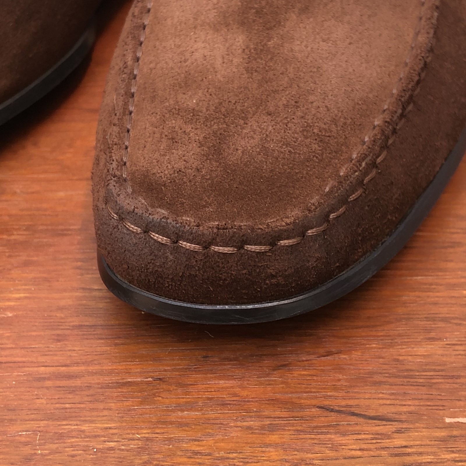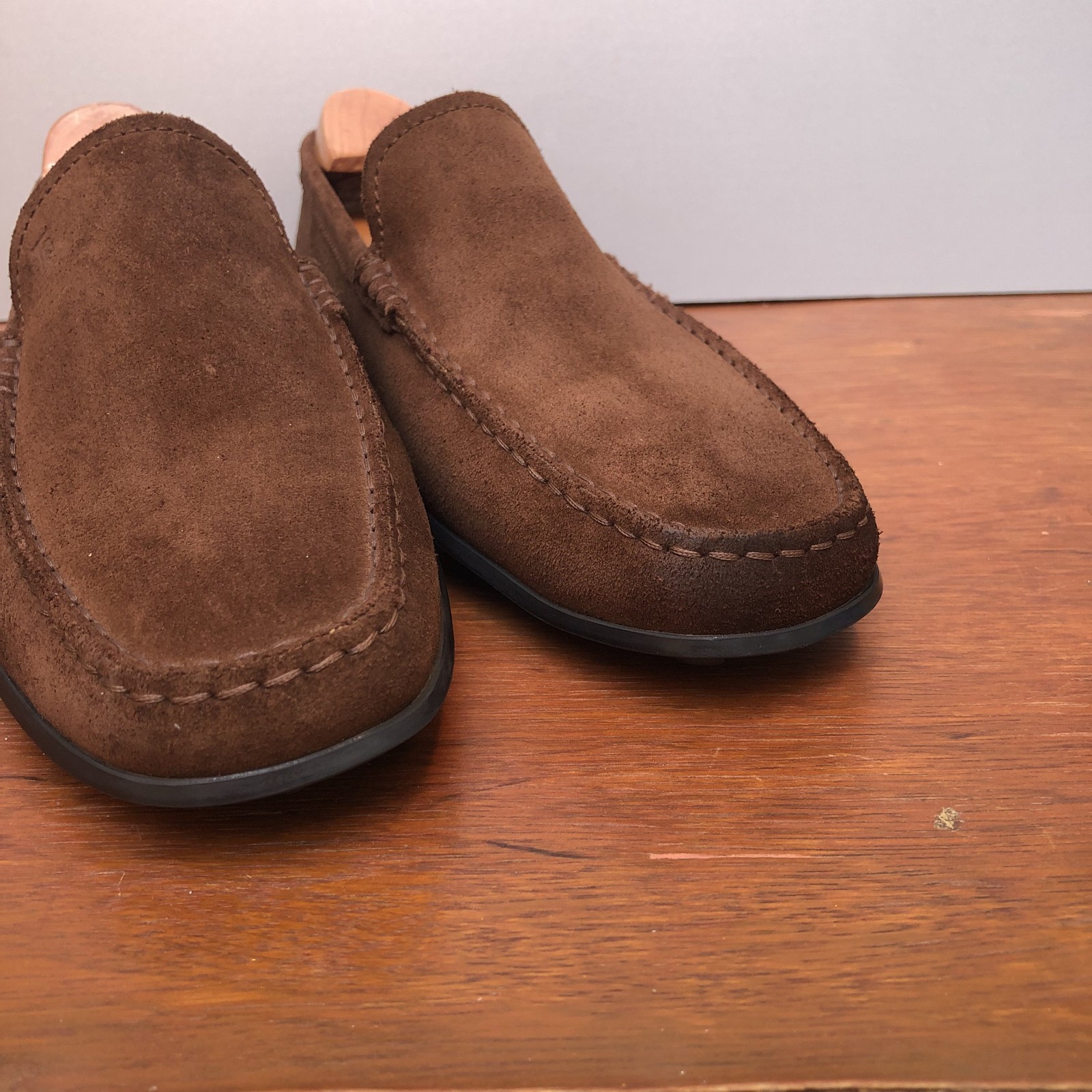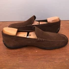 Tod’s Gommino Men’s Brown Suede Loafers – UK 8 / US9 / EU 42 – Made in Italy Authentic Tod’s Gommino loafers in premium brown suede, hand-stitched with the iconic pebble rubber sole. Classic Italian craftsmanship – elegant, versatile and comfortable. Condition Left front: light water mark, treated with polish, still faint (see photo). Right heel: small dark spot near stitching. Right inner lining: very slight looseness at suede edge from storage under clothing (not visible when worn). Light polish smell (will fade). 👉 Shoe tree/form in photos is for display only – not included . Size & Specs Size: US 9 /UK 8 / EU 42 Upper: Brown suede Lining/Insole: Leather Sole: Tod’s pebble rubber Style: Slip-On Loafer Country: Italy Transparency All flaws and details are clearly shown in the photos. 🚚 Shipping Fast EMS Worldwide Shipping: USA : 7–12 days • Worldwide: 6–14 days 💬 Questions welcome – extra photos available on request. ✨ Perfect opportunity to own iconic Tod’s at a great value ✨
