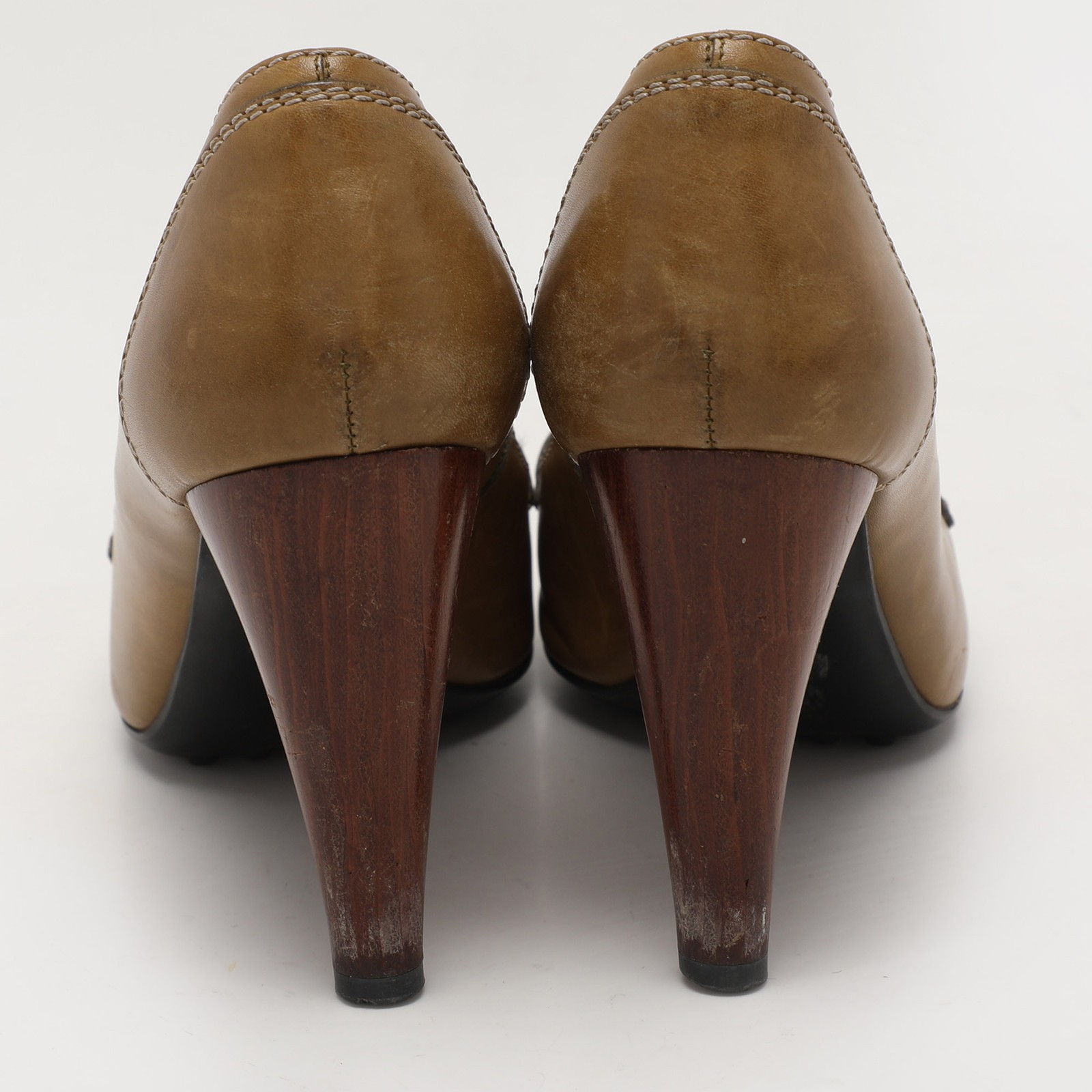 Yves Saint Laurent Olive Green Leather Tribtoo Platform Pumps EU 36.5