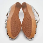 Our eBay Store About Us Contact Us Add to Favorite Sellers Tods Silver Leather Platform Sandals Size 40 These sandals will frame your feet in an elegant manner. Crafted from quality materials, they flaunt a classy display, comfortable insoles & durable heels. Product Details Brand Tod's Color Silver Includes The Luxury Closet Packaging Outsole Length 26 cm Outsole Width 7.5 cm Size 40 Certified by The Luxury Closet This item has gone through a detailed authentication process overseen by our experts. We offer a lifetime guarantee of authenticity on all our items. How We Check The in-house team of experts at The Luxury Closet is highly trained to verify the authenticity and the condition of the luxury products. They ensure that only 100% authentic items are put on sale.The evaluation process is unique with its own mix of assessment criteria and differs according to the category. Each item is evaluated based on the following combination of hallmarks, hardware, stitching, symmetry, material, craftsmanship, stamping, codes, hologram stickers, and packaging. Our authenticators also check if the items have been modified or amended (e.g., aftermarket diamonds, replaced batteries, repaired bags, etc.) International Buyers Import duties, taxes and charges are not included in the item price. These charges are the buyers responsibility. Please check with your country’s customs office to determine what these additional cost will be prior to buying.