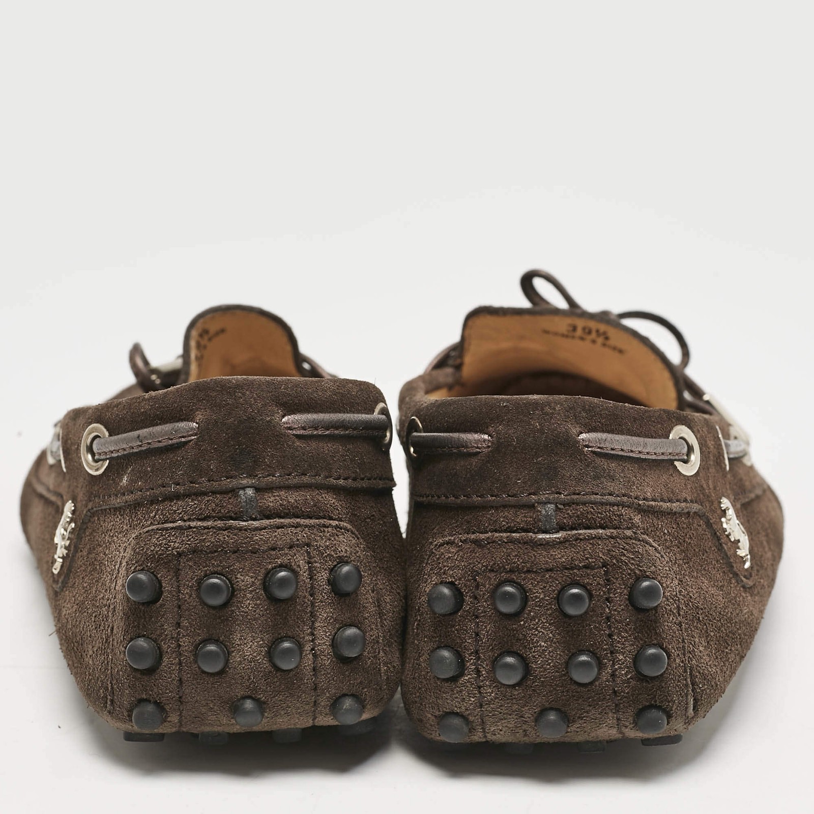 Our eBay Store About Us Contact Us Add to Favorite Sellers Tods for Ferrari Brown Suede Bow Slip On Loafers Size 395 Blending Italian flair and automotive spirit, Tod’s for Ferrari slip-on loafers are crafted in rich brown suede. Featuring a subtle bow accent, they offer a stylish nod to both relaxed sophistication and racing heritage. Product Details Brand Tod's Color Brown Includes The Luxury Closet Packaging Outsole Length 27 cm Outsole Width 8.5 cm Size 39.5 Certified by The Luxury Closet This item has gone through a detailed authentication process overseen by our experts. We offer a lifetime guarantee of authenticity on all our items. How We Check The in-house team of experts at The Luxury Closet is highly trained to verify the authenticity and the condition of the luxury products. They ensure that only 100% authentic items are put on sale.The evaluation process is unique with its own mix of assessment criteria and differs according to the category. Each item is evaluated based on the following combination of hallmarks, hardware, stitching, symmetry, material, craftsmanship, stamping, codes, hologram stickers, and packaging. Our authenticators also check if the items have been modified or amended (e.g., aftermarket diamonds, replaced batteries, repaired bags, etc.) International Buyers Import duties, taxes and charges are not included in the item price. These charges are the buyers responsibility. Please check with your country’s customs office to determine what these additional cost will be prior to buying.