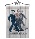 Together We Win Garden Flag Set Wall Hanger Armed Forces Navy USN Seabee Unit...