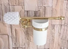 Toilet Brush and Holder Set Ceramic& Brass Gold Bathroom Cleaning Accessories