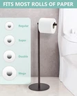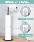 Toilet Paper Holder Stand, Free Standing Toilet Paper Roll Holder for 4 Spare Rolls, Modern Bathroom Toilet Paper Stand with Reserve, Oil Rubbed Bronze, Housen Solutions Material Metal Finish Type Oil Color Oil Rubbed Bronze Installation Type Free Standing About this item SPACE SAVING - This toilet paper holder stand can hold 1 dispense and 4 spare tissue rolls, which helps free up cabinet storage. Besides, the short pin at the end of the rob can keep paper rolls in place to prevent it from falling off. Dimensions: 6.7" W x 6.7" L x 22.47" H. FITS MOST PAPER ROLLS - The toilet paper holder stand is designed to applicable for Jumbo, Mega, Double and Regular size of paper rolls. With the free standing design, you can easily place the toilet paper holder anywhere. FUNCTIONAL PAPER STORAGE - Put the L shaped arm down to use as a toilet paper holder for up to 5 paper rolls. When you have more paper rolls to store, pull the rob up and use it as a toilet paper storage for up to 6-7 rolls of paper at the same time. Save your space and keep your bathroom in order. QUALITY MATERIAL - The freestanding toilet paper holder is made of metal with oil rubbed bronze coating, which protects the toilet paper roll holder from rust and corrosion. It is suitable for humid environments such as bathroom and kitchen. ANTI SLIP PAD - The base is equipped with anti slip EVA pad (already attached), which can prevent the toilet holder stand from moving easily and prevent scratches on the floor. The 20 inch high tissue holder allows both children and adults to easily access paper rolls. EASY TO INSTALL - No drilling and no tools needed! Just connect the bathroom toilet paper holder to the base and tighten the screws. Installation can be completed within 3 minutes. Minimalist design perfectly matches the style of your house, bathroom, kitchen, and RV.