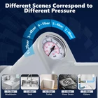 This toilet unclogger is equipped with an adapter that can easily solve clogging problems at various angles. At the same time, it clears the pipes without the use of any chemicals, no need to worry about causing corrosion of the pipes. Note: 1.When unclogging the toilet, pay attention to the closure with the toilet wall, use it at an angle of 45 degrees.2.When using this product for the first time, it is recommended to cover it with other items to avoid splashing on yourself. 3. It should not be used more than 5 times in a row to avoid damaging the machine with too high temperature. Let it dry for 30 minutes or more before using. NO PLUMBER NECESSARY, GOODBYE EXPENSIVE: This toilet air plunger device is lightweight and portable and can be easily installed and used. With a simple press, you can quickly unclog your toilet without having to wait for a plumber to arrive. It not only helps you save time and money, but also allows you to solve clogged toilet problems at home easily. MULTIFUNCTIONAL USE: This multifunctional toilet clog remover can easily unclog the toilet and also able to be used in a variety of scenarios such as bathroom floor drains, kitchen sinks and wash basins. Its powerful air pressure design can effectively apply pressure to remove clogs such as hair, paper towels and leaves, ensuring that all kinds of pipes are free from obstruction. REAL-TIME AIR PRESSURE DISPLAY: This multi-functional air plunger features a real-time air pressure display, allowing you to keep an eye on the air pressure and adjust the air pressure according to the specific needs of your plumbing. Generally, 1-2bar for washbasin, 3-4bar for kitchen sewers, 4-5bar for toilets, and 5-6bar for floor drains. ONE PIECE STAMPED DESIGN: This product features a one-piece stamped design that eliminates the need for an additional external pump, greatly facilitating use and saving you storage space. This innovative design makes it easier to use and better meets the needs of modern families for tool storage and space utilisation. EXCELLENT QUALITY: The toilet plunger heavy duty is made of stainless steel shell and ABS non-slip handle, the drain spout is made of natural rubber, tough and durable. Easy to clean and can be reused for a long time. NOTE: It is recommended to cover the toilet bowl with a clear plastic film to prevent splashing when in use.