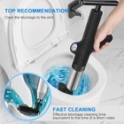 🚽【High Security】Toilet plunger adopts heavy-duty design and built-in safety functions, prioritizing safety. With the ability to display pressure values and observe pressure values in real time, users can avoid excessive force and prevent splashing or damage. As an additional precaution to prevent splashing, it is recommended to cover the plunger with a waterproof film during use, which can be easily removed afterwards. 🚽【High Pressure Toilet Plunger】The toilet plunger has a high pressure air supply and the blast pump is connected to the main piston body of the spray gun. The air pressure is higher than conventional non-inflatable machines, making it more comfortable to use. Turbocharging provides powerful force to the toilet plunger, which can instantly compress air and quickly flush out stubborn clogs in drain pipes. 🚽【New Material Upgrade】toilet clog remover has a stainless steel casing and non-slip ABS handle, which provides a comfortable grip and prevents slipping. The exhaust nozzle is made of natural rubber, which is tough and durable. There is no need to worry about deformation and rust, and it can be reused for a long time, minimizing waste and promoting a sustainable environment. 🚽【Rich and Diverse Functions】drain clog remover is equipped with 5 interchangeable disassembly heads that help to solve different types of clogged pipes. You can easily switch to the appropriate cleaning heads for toilets, bathrooms, kitchen sinks and floor drains. This toilet plunger tool can effectively remove clogs caused by hair, oil or other debris. 🚽【Save Time and Money】With the drain snake plunger, you can deal with various blockages at any time, without waiting for the toilet, without waiting for the plumber in the middle of the night, and without paying expensive labor costs. 🚽【Friendly Reminder】1. To avoid water splashing when using the air plunger of the toilet, please add more water and cover the opening of the toilet with a plastic sheet. 2. Do not use more than 5 times in a row.