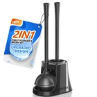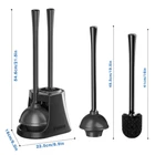 Compact Storage: 2 in 1 Toilet Brush and Plunger Set includes an efficient toilet brush, a durable toilet plunger and venting holder, which provides convenient storage and reduces wasting space in your bathroom. This toilet plunger and brush set is not only a convenient and practical tool, but also can be a stylish decor for your bathroom. Convenient Plunger: This toilet plunger made of durable rubber creates a tight seal around the drain and provides plunging power, which can be a handy tool to unclog the toilet bowls, shower drains, and sinks at any time. Efficient Brush: This toilet brush head with dense and durable bristles can 360° deeply clean the toilet under the rim area and those hard to reach corners. At the same time, durable bristles are not easy to get deformed. & Venting Holder: This holder can hide brush and plunger to make your bathroom elegant. At the same time, the unique vented holder with a drip tray to collect drips from brush and plunger, allows water to evaporate and keeps the holder dry. It's a perfect tool to keep your bathroom tidy. Ergonomic Handle: Ergonomic long handle features a secure and comfortable grip, makes your plunging more effectively, clean clogged toilets like a ! The space-saving toilet brush + toilet plunger combination can be used in residential, industrial and commercial environments.