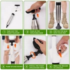 Toilet plungers are a must-have tool for anyone who has frequent clogs in various parts of the house. It works by utilizing a high-pressure pneumatic device that pushes debris, hair, and fabric that clogs the pipes. The pressure generated by the device helps to loosen and remove clogs quickly and easily. Toilet Plunger By using different heads, you can solve a variety of clogging problems in different areas of your home Toilet plungers are easy to use, durable and effective, saving you labor costs, money and time What's in the Toilet Plunger Package? 1 x Toilet Plunger 4 x Plunger Heads 1 x Inflatable Base 1 x Converter 1 x Storage Device 1 x User Manual the tips below to unclog for better results: Tilt the plunger at a 45-degree angle to ensure a good seal against the toilet wall For semi-clogged pipes, put some debris to make the blockage fuller. How to use a toilet plunger? Step 1: Install the toilet plunger. Just connect the top and bottom parts. Step 2: Install the inflatable base, hold the handle and pull the air pump lever firmly until no air can be pumped in. Step 3: Install the appropriate unclogging head, we provide 4 different types of unclogging heads for toilet, kitchen sink, washbasin and floor drain. Step 4: Insert the toilet air plunger into the clogged opening, pull the trigger and press the air pressure release button on the toilet plunger to unclog. (If you can't unclog it the first time, you can repeat it several times). 【High Pressure Design Toilet Plunger】The toilet plunger tool uses high-pressure compressed air to easily unclog a variety of debris such as paper towels, hair, grease, oil, etc. It is faster and more effective than traditional manual sink plungers and toilet figures 【Wide Range of Applications】Toilet serpentine unclogger comes with 4 different unclogging heads, you can change the unclogging head according to your need, suitable for bathroom, toilet, kitchen, sinks, floor drains, clogged pipes and so on 【Real-Time Pressure Barometer】The toilet plunger air pressure indicator on the Sewer Piston Clog Remover allows you to know the real-time pressure while inflating, so you can accurately control the pneumatic activity and operating force to avoid splashing and damage due to excessive force. Note: If you notice no change in the air pressure gauge during inflation, make sure the sealing ring fits snugly into the groove and is positioned in the correct direction 【Save Labor Costs】 Toilet plunger is fully ergonomic and easy to use. The toilet air plug is made of non-slip ABS plastic handle and high-quality stainless steel shell, anti-corrosion and wear-resistant, safer to use, can withstand high strength and high pressure, explosion-proof inner wall. No need to wait for a plumber or incur expensive unclogging costs 【Easy to Operate】This powerful manual pneumatic unclogging sink plunger device is easy to install and use, perfect for home use. -touch switch makes it easy to operate. Just touch of the button, you can easily complete the unclogging work