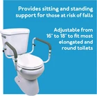 Toilet Safety Frame - Toilet Safety Rails with Adjustable Width - Toilet Steel ONE SIZE FITS MOST TOILETS: The toilet safety frame features a width that is adjustable from 16"-18" to fit most elongated and round toilets. The sturdy toilet rails provide individualized grab bar support when sitting or standing while using the toilet COMFORTABLE & EASY: The cushioned hand grips are both comfortable and easy to clean. The Toilet Safety Frame provides users with sturdy support for seniors, handicap, disabled & pregnant women to safely sit or stand alone at the toilet VERY SAFE AND STURDY. Handicap grab bars for toilets that allow you to sit safely or stand at the toilet. Perfect for those who are a fall risk and need a toilet safety rail in the bathroom or those who need a handicap compatible toilet. Holds 300lbs. ECONOMICAL & EASY to install the Carex Toilet Safety Frame is an essential supply for anyone who needs extra support sitting or standing alone at the toilet. It provides help in changing places from a chair to the toilet as well as assisting in balance EASY INSTALL. The toilet stand is easy to install and setup. The toilet rail would pair nicely with a handicap toilet seat for added bathroom safety. Trust in Carex, a leader in bathroom safety bars for elderly, handicap, seniors, and the disabled Product Description The video showcases the product in use. The video guides you through product setup. The video compares multiple products. The video shows the product being unpacked. Other Carex Bath Safety Products Add to Cart Add to Cart Add to Cart Add to Cart Add to Cart Add to Cart Customer Reviews 4.3 out of 5 stars 3,316 4.3 out of 5 stars 3,368 4.2 out of 5 stars 11,968 4.1 out of 5 stars 3,217 4.2 out of 5 stars 7,978 4.3 out of 5 stars 3,003 Price $29.99 $ 29 . 99 $36.99 $ 36 . 99 $49.99 $ 49 . 99 $41.49 $ 41 . 49 $29.69 $ 29 . 69 $40.49 $ 40 . 49 Toilet Bowl Shape Round or Elongated Round or Elongated Elongated Round or Elongated Elongated Round or Elongated Height Added to Toilet Seat 0 5" 3.5" 5" 3.5" 0 Toilet Seat must be Removed ✘ ✘ ✔ ✘ ✘ ✘ Does It Include Arms? ✔ ✘ ✔ ✔ ✘ ✔ Are the Arms Detachable? ✘ ✘ ✔ ✔ ✘ ✘ Width Between Arms 17" - 19.5" N/A 18.25" 18" - 20" N/A 21.75" Are Tools Required? Screwdriver May Be Required No Screwdriver May Be Required No Screwdriver May Be Required No Weight Capacity 300 lbs. 300 lbs. 250 lbs. 300 lbs. 300 lbs. 300 lbs. Material Steel Molded Plastic | Aluminum Molded Plastic | Aluminum Molded Plastic | Aluminum Molded Plastic Aluminum 21.0 "w x 11.0 "w. Weight: 5.0 lb Item model number FGB36800 0000 Color White Product Dimensions 11"L x 21"W Material Steel Country of Origin China Item Weight 5 Pounds Is Discontinued By Manufacturer No Manufacturer Health Brands