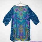 Tolani blue Electric Paisley Shift Dress with tassles, 1X Soft woven shift dress with notched neck and wide three-quarter sleeves, no stretch, neck tassel-tie closure, side slits, multicolored paisley and geometric design, lined. Measurement from size 1X: Shoulder to hem length 38.5” The bold colors of this relaxed Tolani pick beckon to the fashion bohemian within, offering a sophisticated yet free-spirited take on the traditional shift dress. 100% Modal Imported Color: blue, purple Size 1X , please check laid flat measurements. Shoulder(seam to seam): 18 1/2'' Bust(armpit to armpit): 26 1/4'' Length (from high point of shoulder down): 37 3/4 '' Sleeve(shoulder seam to hem): 19'' Measurements are approximate and provided as a courtesy, not a guarantee of fit. Excellent condition. No noticeable flaws or stains or damages. Actual colors may vary. This is due to different computer monitors displaying colors differently and everyone can see these colors differently. Tags: BOHO, vacation, soft, comfortable