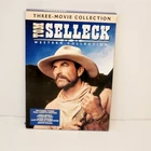 The "Tom Selleck Western Collection" includes three Western films: "Monte Walsh," "Last Stand at Saber River," and "Crossfire Trail." Directed by Dick Lowry and produced by Turner Home Ent, this DVD collection has a total run time of 306 minutes. The films are in English and are unrated. Enjoy a selection of classic Westerns featuring the iconic actor Tom Selleck.