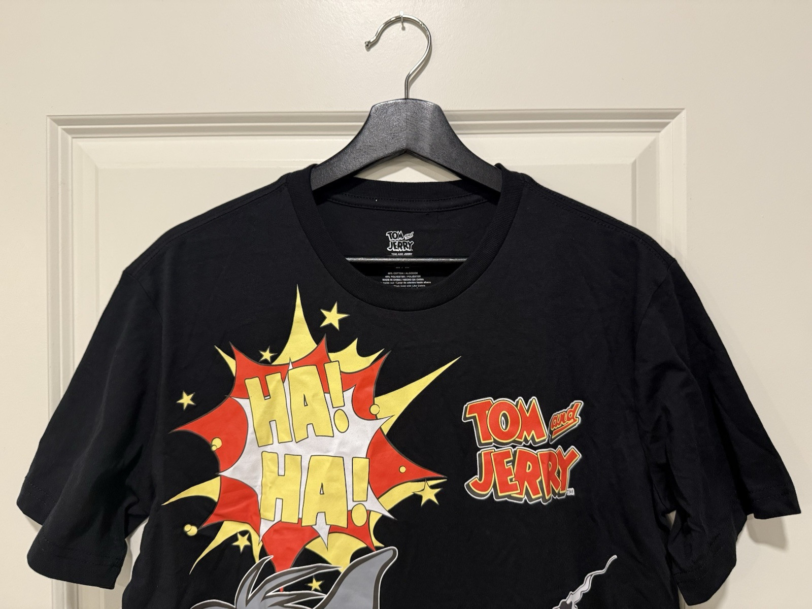 Embrace your love for the iconic animated duo with this stylish Tom and Jerry T-shirt. Perfect for fans of all ages, this medium-sized tee features a classic graphic print that captures the essence of the beloved characters. Crafted with a comfortable blend of cotton and polyester, it's designed to provide a soft touch and durability for everyday wear. The shirt boasts a short sleeve, crew neck design that offers a timeless casual look, making it an ideal choice for any casual occasion. Its all-seasons feature ensures it's suitable for every wardrobe, while the machine washable fabric allows for easy care. Whether you're out with friends or lounging at home, this black Tom and Jerry T-shirt is sure to become a cherished piece in your collection.
