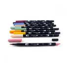 Set of 10 Dual Brush Pen colors. Flexible brush tip and fine tip in one marker. Brush tip works like a paintbrush to create fine, medium or bold strokes; fine tip gives consistent lines. Dual Brush Pens are ideal for artists and crafters. The water-based ink is blendable and the resilient nylon brush retains its point stroke after stroke. Colors Included: 772 Dusty Rose, 910 Opal, 993 Chrome Orange, 946 Gold Ochre, 192 Asparagus, 312 Holly Green, 992 Sand, 526 True Blue, 679 Dark Plum, 757 Port Red. Water-based pens ideal for coloring, fine art, illustrations, doodling, journaling, hand lettering and more. Set of 10 Tombow Dual Brush Pens. Flexible brush tip and fine tip in one marker. Brush tip works like a paintbrush to create fine, medium or bold strokes fine tip gives consistent lines Tips self-clean after blending. Acid-Free, Odorless.