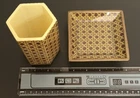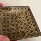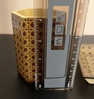 Tommy Bahama Bathroom Accessories Soap Dish Toothbrush Holder Brown Beige yellowish Cane Wicker Print. Some wear from use on soap dish. Toothbrush holder has less wear.