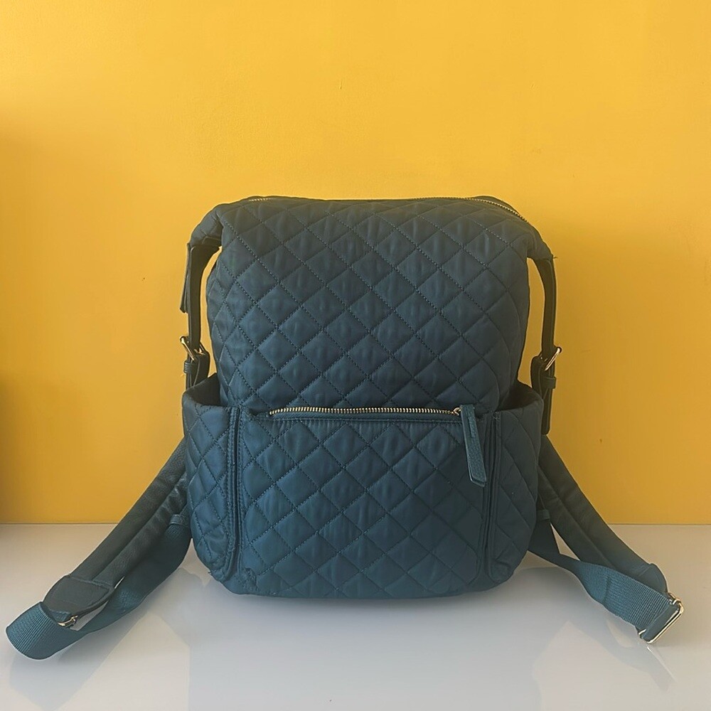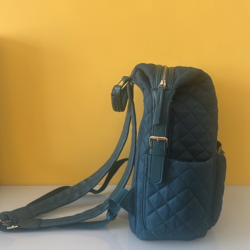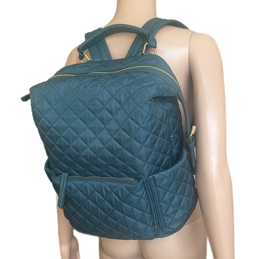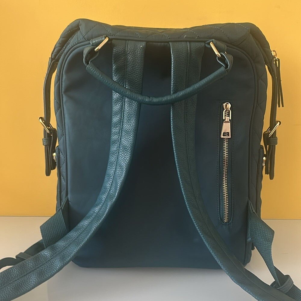 Tommy Bahama Day Trip Backpack MSRP $129 Color: Teal Large quilted diamond padded backpack with vegan leather details. Multi-pockets & compartments *Fits 14” Laptop or Tablet* WASHABLE Textile and vegan leather Gold tone hardware (Nice and shiny) Top carrying handle 4” Large main compartment top zip around closure Side snap expandable top Front zip pocket Slip pockets on both sides 1 hidden vertical rear secret zip pocket Zipper pulls 1 large zip Pocket inside Teal fabric lined interior Printed positive words inside Logo fixed on inside Padded adjustable shoulder straps Quilted & padded throughout Flat base Height is approx. 14" to 17.5”H Width at bottom 10”W Depth 6”D Strap drop max. 20", min.10" Excellent preowned condition. Please see photos for details. Hello & Welcome! All sales are final! Pictures are the best part of the description for style/details. Please ask questions before buying, No cancellations. No returns. Read entire description and see all photos. If you need any additional measurements please let me know BEFORE making your purchase. Measurements are approximate / colors may appear slightly different in person Thanks for looking! Check out my other great items, I will gladly combine shipping. I appreciate your business and hope you'll add me to your favorites!