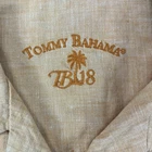 Excellent condition with a very tiny small mark on a sleeve that is pointed out in the photos Please examine all photos for flaws measurements and exact fit Sleeve Length: Short Sleeve Department: Men Closure: Button Accents: Button Theme: Colorful Material: linen Collar Style: Button up Character: Jungle Girl Type: Button-Up Neckline: Collared Occasion: Casual Season: Summer Keywords: Tommy Bahama, Mens Shirt, Silk Shirt, Tropical Print, Cocktail Print, Aloha Shirt, Hawaiian Shirt, Summer Shirt, Vacation Wear, Resort Wear, Mens Fashion, Casual Shirt, Island Style The size is more like a medium fit. Please examine all photos for flaws measurements and exact fit.