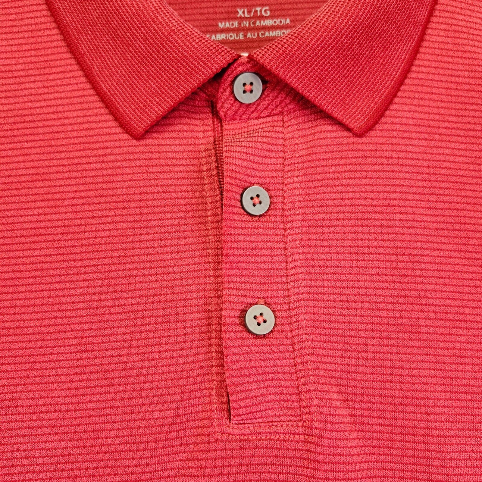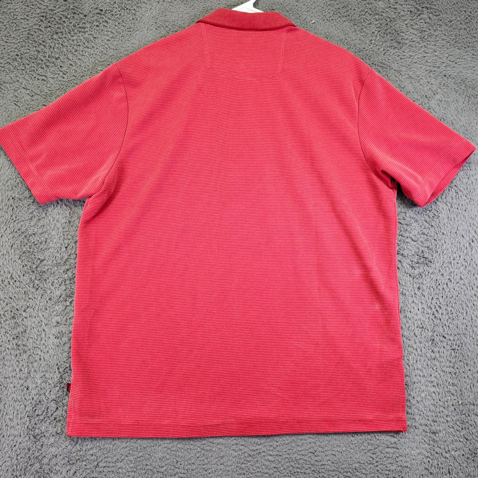 A classic polo shirt, perfect for casual wear. This short-sleeved polo features a three-button placket and a subtle striped pattern throughout. The shirt has a traditional collar and a straight hem. There is a small, faint spot on the front of the shirt. Color: Red Department: Men Type: Polo Performance/Activity: Golf, Walking, Beach, Tennis Sleeve Length: Short Sleeve Fabric Wash: Light Character: Fisherman, Happy, Ken, Captain America, Godzilla Pattern: Striped Fit: Regular Material: Cotton Blend, Polyester Blend, 100% Cotton, 100% Polyester Keywords: Tommy Bahama, polo shirt, men's polo, short sleeve, casual shirt, red polo, striped polo, XL, extra large, men's clothing, polo top, button down, collared shirt, preowned all items have been cleaned and disinfected we stand behind all items we sell so please contact us if you have an issue with any order