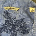 The Tommy Bahama Men's XL Silk Short Sleeve Button Up Shirt in a Blue Floral Checkered pattern is a stylish and versatile addition to any man's wardrobe. Made from lightweight and breathable silk fabric, this shirt is perfect for summer, fall, and spring occasions. The collared neckline and button closure add a touch of sophistication, while the embroidered accents and beach-themed design give it a fun and tropical vibe. Whether you're traveling, heading to a party, or just dressing up for casual wear, this Tommy Bahama shirt is sure to make a statement. Easy to care for with machine washable instructions, this shirt is a practical and fashion-forward choice for any man.
