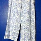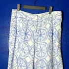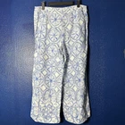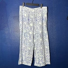 These Tommy Bahama Women's Watercolor Tiles Linen Cropped Gaucho Pants in size 8 feature a tropical floral pattern in shades of blue, perfect for summer, fall, and spring occasions. The wide-leg, high-rise design with a relaxed fit and cropped length makes them ideal for casual or travel wear. Made from machine-washable linen, these pants have a zipper closure and a flat front waist,Perfect for those who enjoy a tropical theme in their clothing choices Measurements are approximate. Please compare our measurements to your favorite garments to ensure proper fit. Length: 34" Waist: 16.5” Inseam: 24” Rise: 10.5" Wide leg: 11" B36-2310