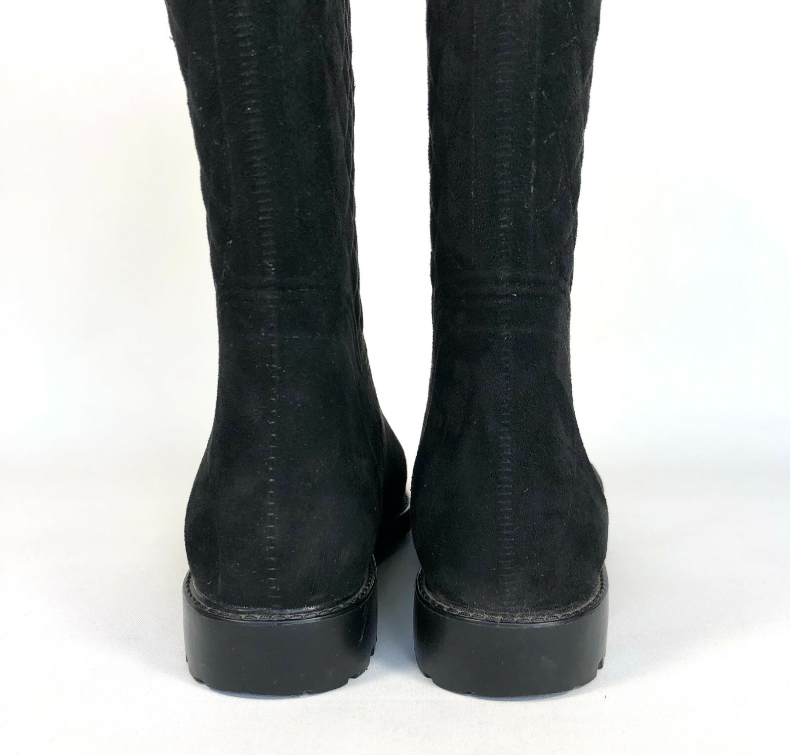 Tommy Hilfiger Babette Black Quilted Faux Suede Tall Rain Boots Size: Womens 9 Boots Shaft: 15" Condition: Pre-owned but in good condition! (Note: Missing TH logo on sides of upper part of boots. See pic gallery for close-ups) FAST SHIPPING!