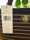 Crafted with sophistication in mind, this Tommy Hilfiger Crossbody Purse MODEL XW04508 971 0 GL embodies both functionality and high fashion. It features a sleek black PVC exterior with the iconic TH logo pattern, complemented by gold-plated hardware for a touch of luxury. The trapezoid shape and twisted rope details add a contemporary edge to the design, making it a versatile accessory for any occasion, from casual outings to cocktail parties.The purse is lined with soft blue microfiber, providing a gentle touch for your belongings. Its small size is perfect for essentials, while the zip closure ensures they stay secure. With a durable PVC strap in matching black, this crossbody is designed for comfort and ease, whether you're traveling, at work, or enjoying an evening out. MSRP $128 UPC 197735818328 Kindly note: While we strive toensure the colors displayed in the image are as true to life as possible,variations in lighting, monitor calibration, and screen settings may causeslight differences in color appearance. We appreciate your understanding.