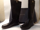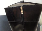These Tommy Hilfiger knee-high black riding boots in women's size 9 feature a round toe, zip closure, and low block heel. The equestrian-themed boots are accented with a zipper and the Tommy Hilfiger logo, perfect for travel, casual outings, or business wear. Made of faux leather with a lined interior, they are suitable for winter, fall, and spring seasons, adding a touch of outdoor style to any outfit. Note: The box was a beaten up in shipping, but the boots are in new condition and look great! Please review all photos.