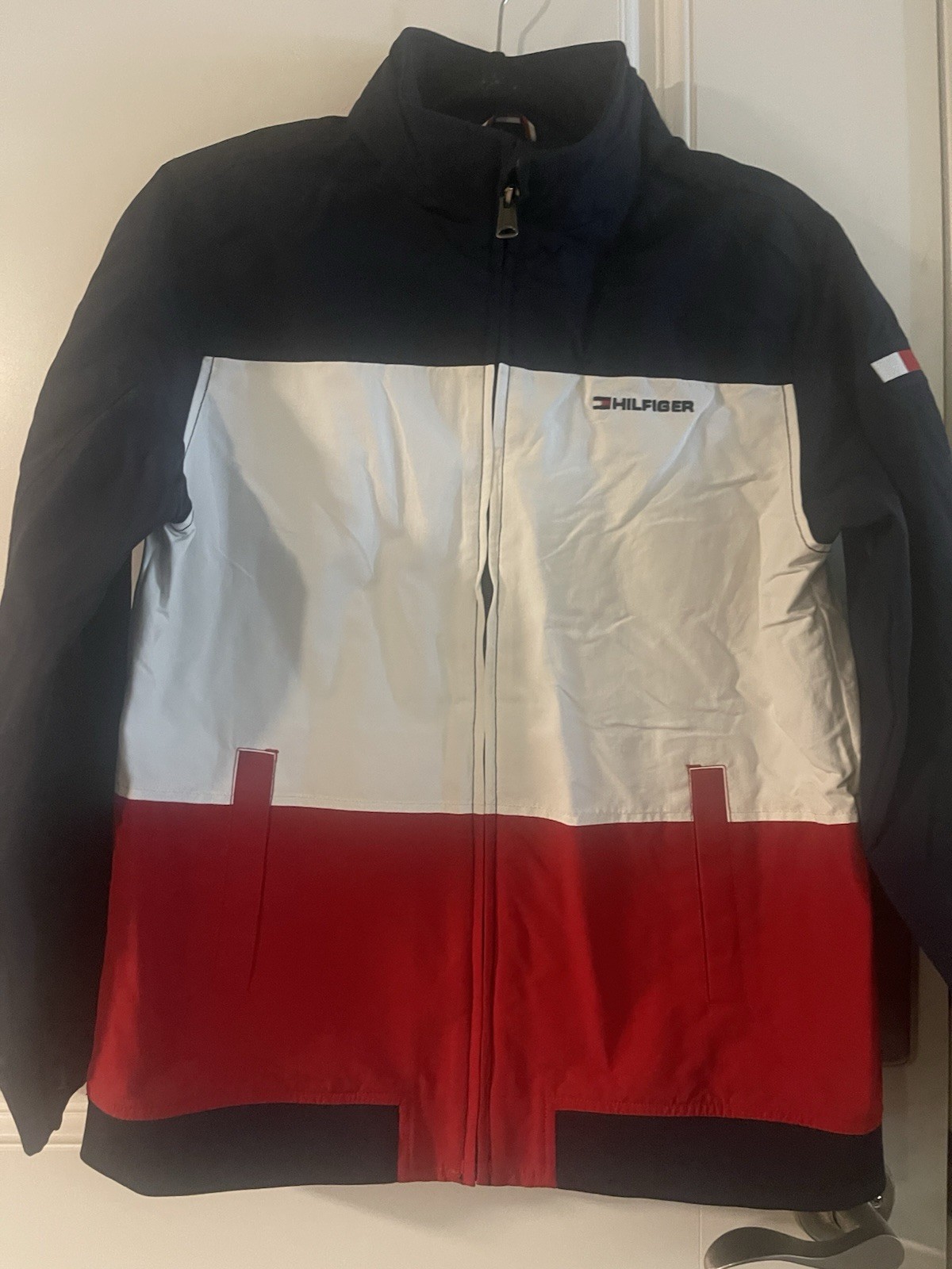 Windbreaker jacket is in excellent condition, never worn Boys size XL Chest measurement is 38” Overall length is 23.5” Full Zip Blue Mesh Lining