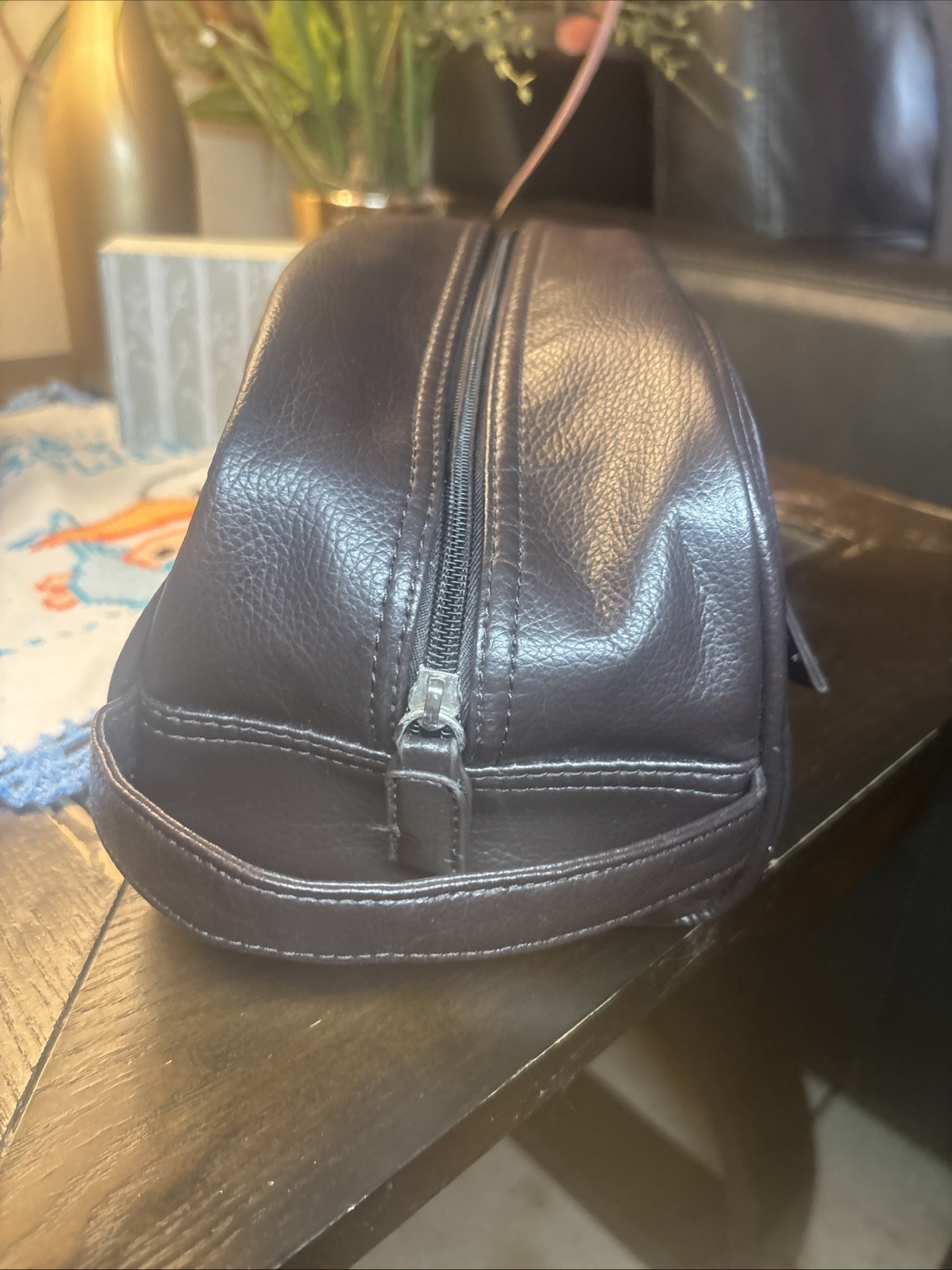 The Tommy Hilfiger Brown Leather Toiletry Bag Dopp Kit Travel Case is a stylish and practical accessory for men on the go. Made of high-quality leather with a solid brown color, this medium-sized bag features a zip closure and a convenient clutch style design. Perfect for travel, this toiletry bag is both durable and fashionable, showcasing the renowned Tommy Hilfiger brand. The leather lining and handle/strap material add a touch of sophistication to this sleek and modern travel essential.