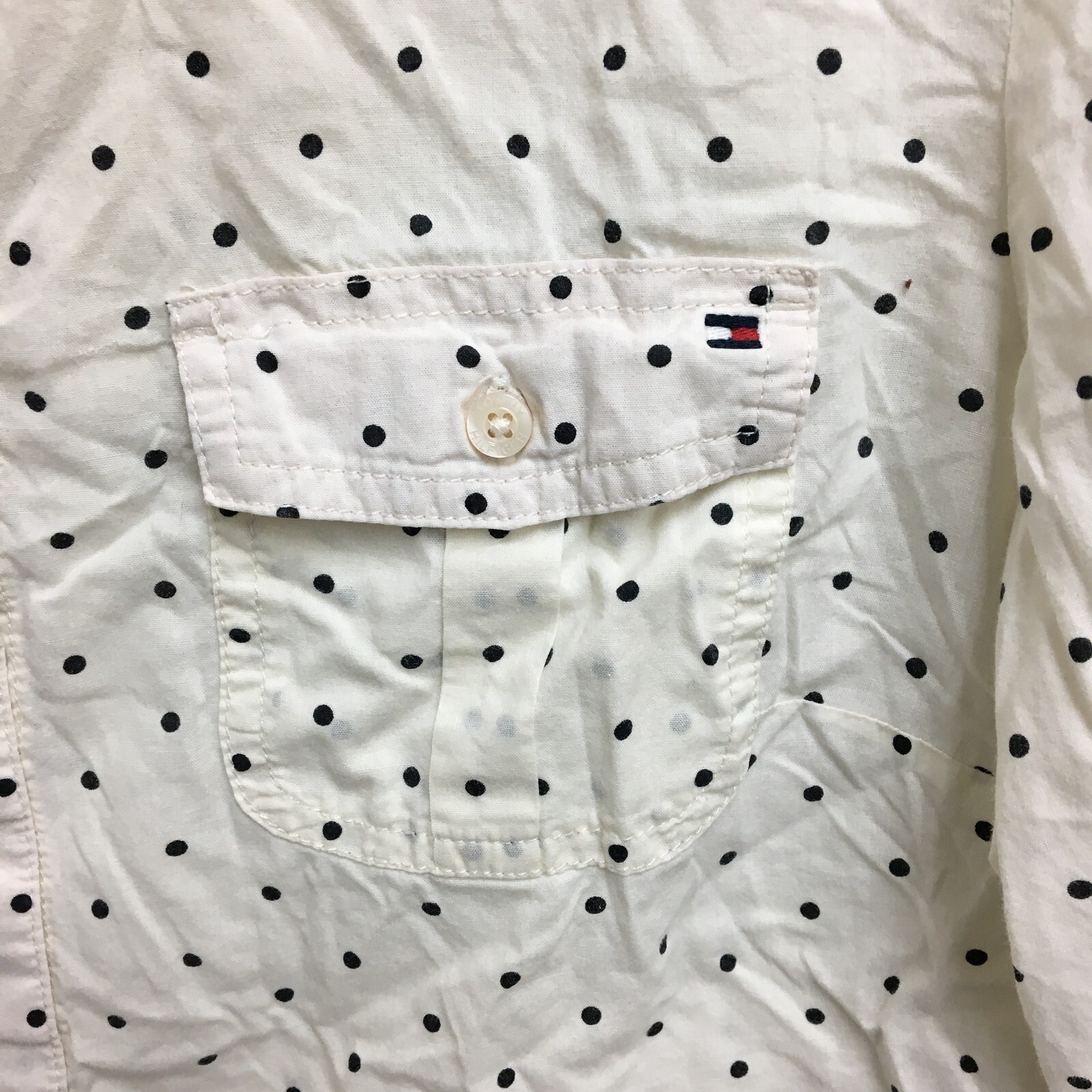 Tommy Hilfiger Button Up Shirt Medium Adult White Polka Dots Long Sleeve Womens
