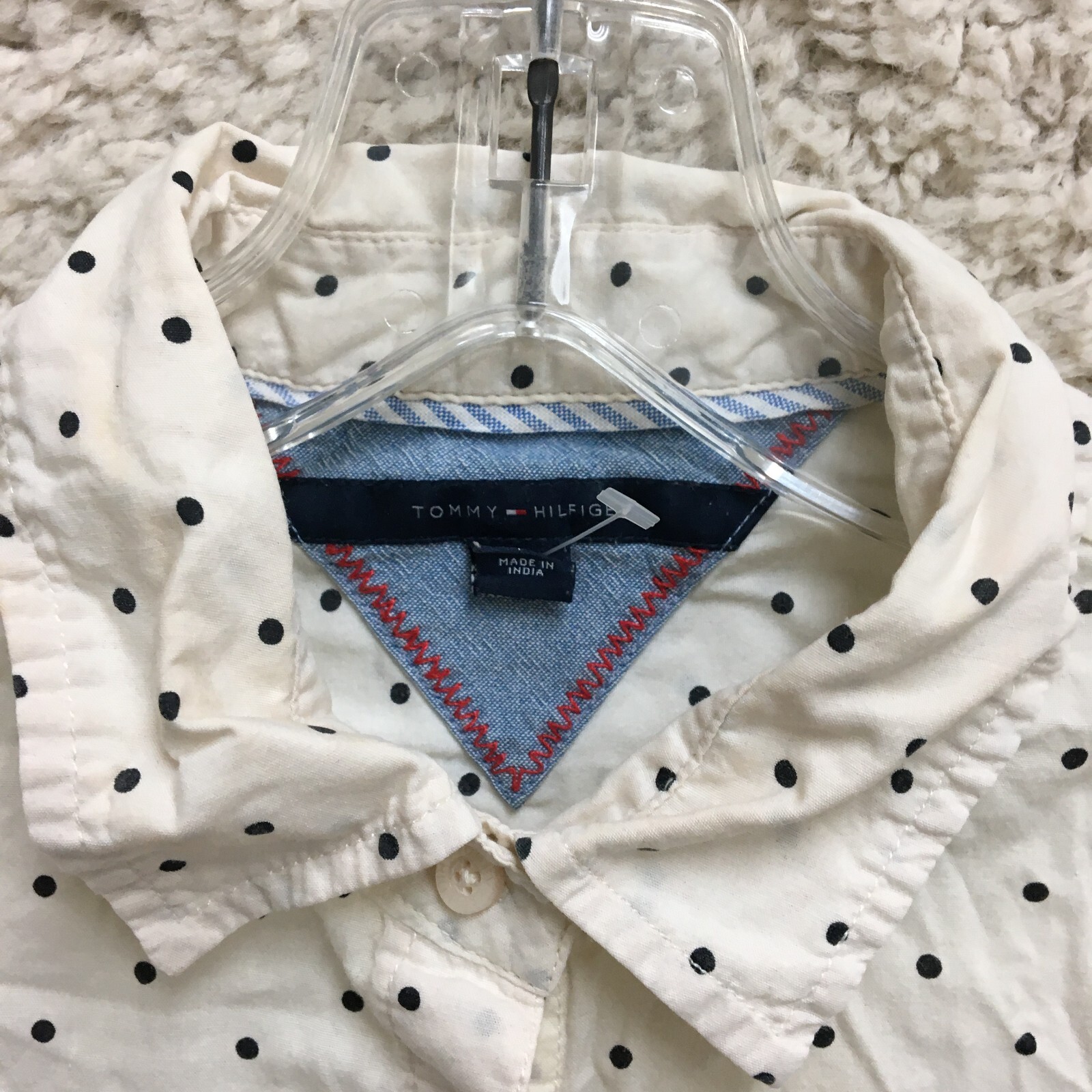 Fit: Regular Season: Fall, Spring, Summer Theme: City, Classic, Designer Garment Care: Machine Washable Features: All Seasons, Breathable, Pockets Color: White Brand: Tommy Hilfiger Accents: Button Closure: Button Occasion: Business, Casual, Formal, Party/Cocktail Department: Women Country of Origin: India Size Type: Regular Pattern: Polka Dot Sleeve Type: Casual Sleeve Sleeve Length: Long Sleeve Size: M Style: Basic Type: Button-Up Material: Cotton Neckline: Collared