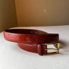 Tommy Hilfiger Croc Embossed Leather Belt Cognac Brown Gold Buckle 38 -DETAILS- Designer: Tommy Hilfiger Size: 38 Material: Genuine leather Condition: Gently Used -MEASUREMENTS- Width 1.25” Full length 43” Length to first hole 35.25” Length to last hole 39.25” M0402 💐 🌿 💐 🌿 💐 🌿 💐 🌿 💐 F L O W E R S F O R O L I V E R *Open to offers *Orders ship same day/ next day *Please message with any questions